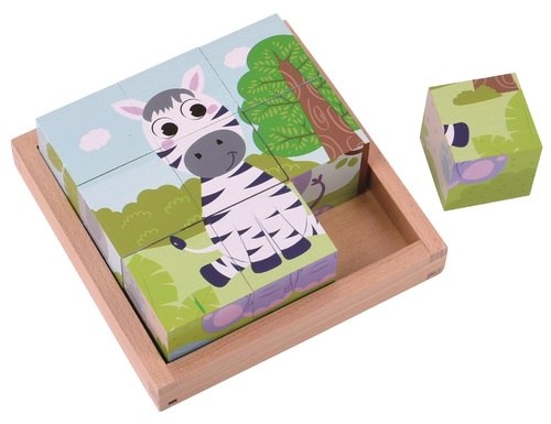 פאזל קוביות עץ 9 חלקים 6 תמונות עם מגש - חיות בר